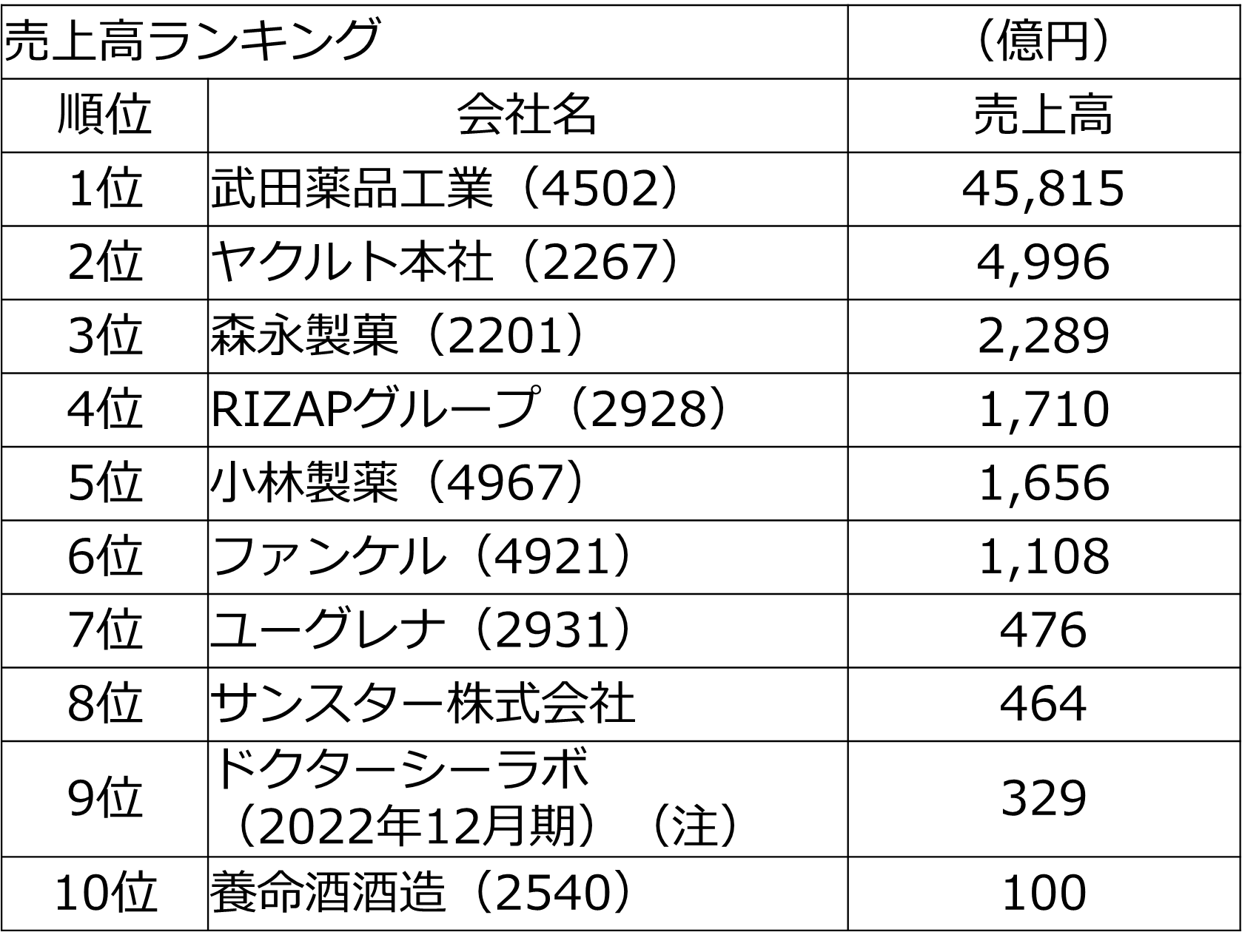 健康食品メーカーの売上高ランキング
