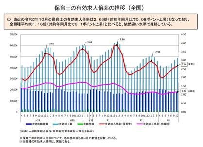 出所:厚生労働省 保育士の有効求人倍率の推移